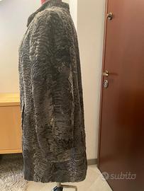 Pelliccia corta in agnello persiano (Astrakan) di colore grigio, in buon stato. Presenta piccoli segni d'usura sulla manica come da ultima foto. Taglia XL. Misure: spalle 46, ascelle 62, manica dal collo 76, lunghezza 87 cm