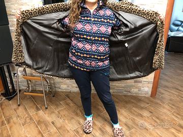 Pelliccia corta leopardata sintetica di alta qualità. Possibilità di prova, di spedizione a carico acquirente o di trasporto a Roma zona Eur. Gradito contatto telefonico al 360430556.
