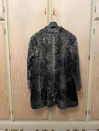 Cappotto in pelliccia originale astrakan grigio. Taglio classico e dritto, elegante e dalla linea senza tempo. Nessun difetto o imperfezione. Misure in cm: spalle 48, lunghezza 88, maniche 60.