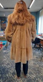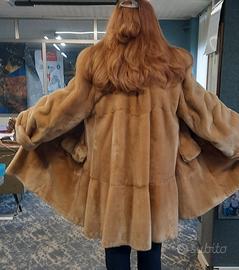 vera pelliccia di castorino . modello con spalle imbottite, molto ampia, color biscotto, taglia dalla 48 alla 52