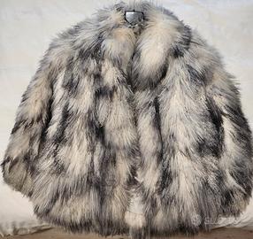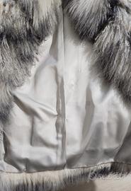 Pelliccia artigianale di Mongolia, stile e design anni '80, bianca, con sfumature della gamma dei grigi.