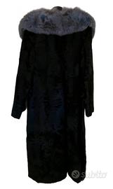Splendida pelliccia vintage di persiano nero con collo di volpe argentata. Manifattura sartoriale, taglia circa 46, ottime condizioni.