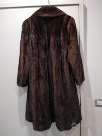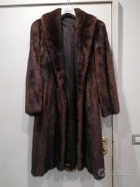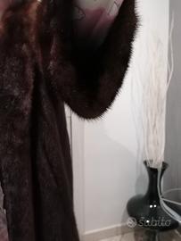 Pelliccia di visone scuro in ottime condizioni, chiusura con gancetti a clip, tasche a filo.