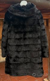 Vendesi un bellissimo Cappotto in Pelliccia di Visone nero a pelli intere con cappuccio in visone foderato internamente con Visone. Usando la cerniera la manica lunga si trasforma in una manica 3/4 e sempre usando la cerniera il cappotto si trasforma in una giacca. Taglia 40-42, molto leggera e morbida in buone condizioni. E' stata acquistata nuova questa stagione. Guardate gli altri miei annunci