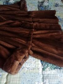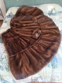 Bellissimo ed elegante cappotto in visone , colore castano dorato, ampio con volan sul fondo, collo a scialle, fodetato .Vestibilità ottima per TG 44/46