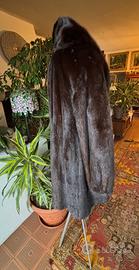 Bellissima giacca lunga e ampia di visone scanbrown con maniche a polsino stretto e collo sciallato. Chiusura con 3 clips. Taglia 42/44. Misure in dettaglio dopo l'ultima foto. Pulita e pronta all'uso.