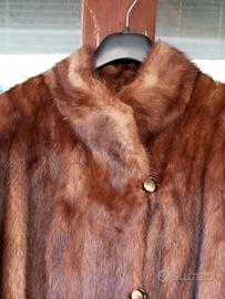 Pelliccia di visone vintage.Ha tre grandi bottoni e il collo dritto, quasi alla coreana. Taglia 42/44.
