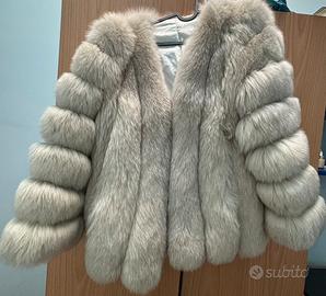 Una bella pelliccia di volpe grigia assolutamente nuova, vera pelliccia, non è mai stata indossata, calda ed elegante