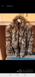 Pelliccia donna volpe Groenlandia, ampia, collo sciallato, ha un unico bottone di chiusura, maniche larghe con tasche laterali, mod. corto cm 80 circa di lunghezza, e cm 50 di spalle misurando da spallino a spallino.
