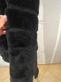 Pelliccia ecologica nera, stile #cincilla, fodera nera, ultra morbida e piacevole al tatto, cappuccio, chiusura con la cerniera perfettamente funzionante, 2 tasche laterali, marchio Zuiki, taglia indicata S, indossata diverse volte, presenta lievi segni di usura sui gomiti( vedi ultima foto), del resto in molto buono stato.
