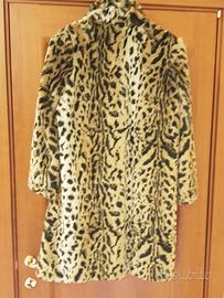 pelliccia eco made in italy LAFTY TIE CARPI usata 3 volte perfetta con 2 spille deco'e 1 bottone centrale interno in raso rosa stampa leopardo taglia 44.retail price 390€.
