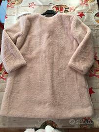 Pelliccia ecologica rosa chiusa dal bottone sul colletto. Lunghezza 80 cm. Mai usata.