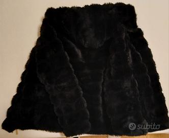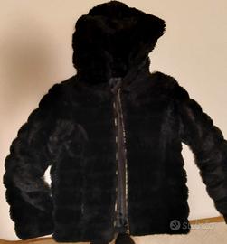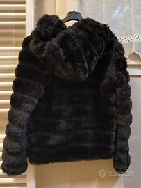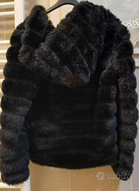 Pelliccia ecologica nera tg 42 con cappuccio