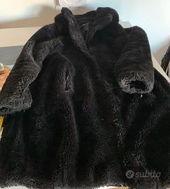 Calda Pelliccia ecologia colore nero marca TPN con cappuccio e chiusura bottoni clip. Due tasche laterali. E’ taglia XS ma veste abbondante. Lunghezza cm. 86. Indossata molto.