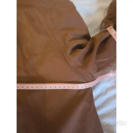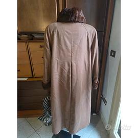 formato da due strati: un trench lungo color marrone, e un altra parte staccabile, comprensiva di maniche, in vera pelliccia lapin, morbidissimo e caldissimo.