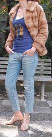 Pelliccia giacca in visone selvaggio femmina naturale. Fodera in raso. Chiusura a 3 ganci, manica 3/4, modello Jackie O´, modello A/I 2015/16, modello pratico ed elegante adatto ad ogni occasione. Si tratta di un capo indossato pochissime volte senza segni di usura o pelo mancante privo di qualsiasi odore. Taglia 42 ma è utile valutare le misure: - spalle cm 43; - busto cm 54; - - lunghezza cm 60 ( cucitura del collo al fondo)- manica cm 52.