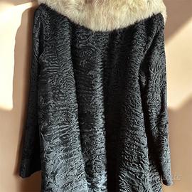 Tg 52 pelliccia in Astrakan nera con collo in Volpe