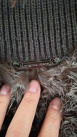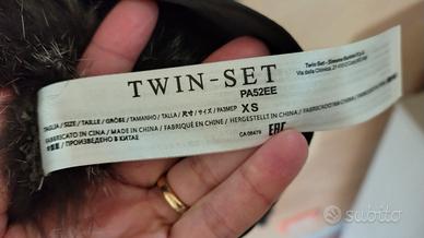 Raffinata ed elegante pelliccia in lapin, colore verde militare/bottiglia, brand TwinSet.