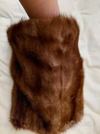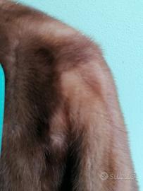 pelliccia in visone a 3/4, con finitura-chiusura in raso, due bottoni a clip interni, tasche laterali, maniche a 3/4, usata pochissimo, fodera pregiata, aggiungo un manicotto in visone, scaldamani possibile la spedizione