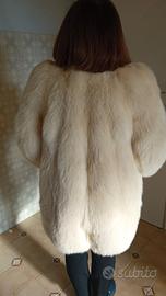 PELLICCIA VOLPE ARGENTATA REALIZZATA NELL'ANNO 1987 DALLA PELLICCERIA PROCENTESE DI NAPOLI. MISURA 42/44, LUNGHEZZA GIACCONE cm 80 (dalla spalla), OTTIME RIFINITURE INTERNE, BORDI MANICHE E DELLE DUE TASCHE NON CONSUMATI, NESSUNA MANCANZA DI PELLICCIA IN ALCUNA PARTE, CHIUSURA A 3 BOTTONI CON ASOLA IN MATERIALE ELASTICO, COMPLETA DI SACCO DI COPERTURA.NESSUNA MACCHIA O DANNO. INDOSSATA POCHISSIMISSIME VOLTE (IL CLIMA PARTENOPEO NON RICHIEDEVA UNA PELLICCIA MA LA MODA DELL'EPOCA ERA AVERLA ANCHE SE NON SI USAVA).