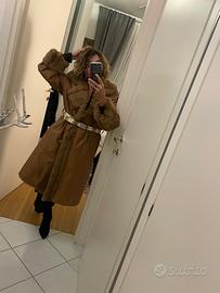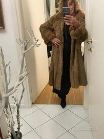 Pelliccia lapin e gabardine double-face, color cammello, bellissima e chic, due capi in uno, leggerissima e calda Ampio collo e ampi risvolti su entrambi i lati delle maniche Ottime condizioni Taglia M. Misure spalle 46, ascelle 58 lunga 102 Ozzano Bologna €150