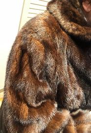 Vendo pelliccia in vero visone, colore marrone scuro, molto elegante e raffinata. Modello classico con collo e maniche morbide, chiusura frontale con bottone gioiello. In perfette condizioni, pulito e sistemato da pellicceria Landi. Taglia 46/48