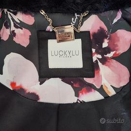Pelliccia ecologica LUCKYLU taglia 42, corta, colore nero e blu elettrico, chiusura frontale con ganci, con possibilità di togliere le maniche, in ottime condizioni, utilizzata pochissimo, come nuova.