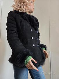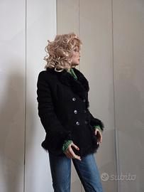 Montone anni 2000 doppiopetto in ottime condizioni taglia 44 di colore nero bellissimo e intramontabile molto caldo firmato emmalucia modello senza tempo perfetto per la montagna e l'inverno. Misure: 52cm petto 63cm lunghezza 48cm spalle 67cm maniche.