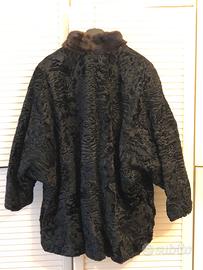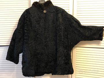 Pelliccia Persiano nera, collo in visone e maniche a kimono, tg 46/48. No perdi tempo.