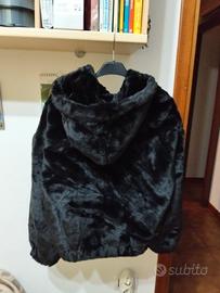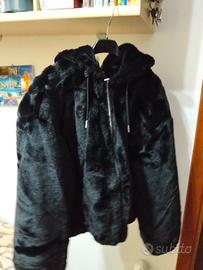 pelliccia nera corta con cappuccio, chiusura a cerniera, indossata poche volte è ancora nuova taglia S