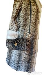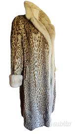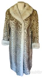 Cappotto vintage in Ocelot baby con collo,bordo centrale e maniche in visone palomino. Il cappotto è accompagnato da borsa modello baguette con manico sganciabile per poterla portare anche a mano. Veste taglia 42-44 . Misure : Spalle 44 cm. Manica : 58 cm. Lunghezza : 105 cm . Circonferenza petto pelliccia chiusa ascella ascella : 100 cm. Per ulteriori info, foto aggiuntive si prega di contattarmi.