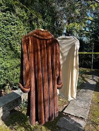 Vendo splendida pelliccia originale in visone SAGA MINK Royal, colore mogano/castano lucido, di grande eleganza e qualità. Modello classico lungo al ginocchio con linea morbida e vestibilità raffinata, ideale sia per occasioni eleganti che per un look ricercato quotidiano. Presenta ampio collo sciallato, chiusura frontale con bottone gioiello e fodera interna originale. La pelliccia è in ottime condizioni: il pelo è morbido, lucente e uniforme, senza difetti evidenti. Conservata con cura. Marca: SAGA MINK Royal Colore: mogano / castano scuro Lunghezza: circa al ginocchio (taglia M) Vestibilità: morbida, elegante Condizioni: ottime