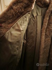 pelliccia champagne castorino modello svasato chiusura davanti colore oro ,risvolto alle maniche ,lunghezza fino ad inizio coscia acquistata in pellicceria