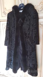 Pelliccia persiano astrakan nero con cappuccio e guarnizioni in volpe, taglia 44. Molto bella. Perfette condizioni sia esternamente che nella fodera interna. Visionabile a Roma