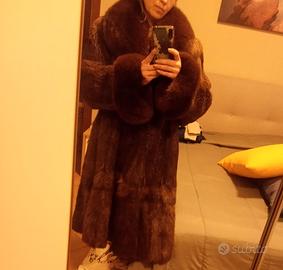 Pelliccia vintage nutria vera ,collo e polsini in volpe nera,nessun difetto, perfetta dentro e fuori.Taglia M ma grazie al modello a trapezio è indossabile dalla S alla L.