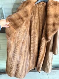 Esterno in seta, interno totalmente di pelliccia di visone. La pelliccia è in ottime condizioni, la seta presenta due macchioline come da foto. È una 44 ma Veste bene anche una 42/46.