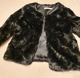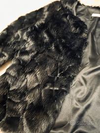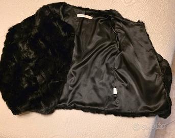 pelliccia sintetica nera taglia M, chiusura con gancetti.