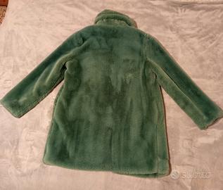 Splendida pelliccia ecologica (faux fur) color verde petrolio/salvia, estremamente morbida al tatto. Modello dal taglio classico con ampio colletto, perfetto per l'inverno.