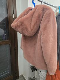 vendo per inutilizzo pelliccia rosa scuro, come nuova. Con cappuccio, zip e tasche.