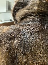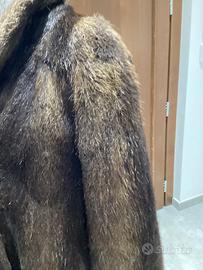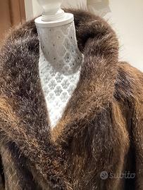 Pelliccia vera vintage. Colore marrone, collo a scialle, chiusura con due ganci, tasche laterali. Taglia 48/50. Fatta in pellicceria. Usata pochissime volte.