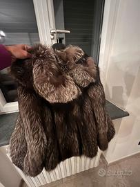 Pelliccia vera volpe argentata vintage restaurata e rimessa a modello piu moderno con ampio cappuccio Estremamente calda e voluminosa