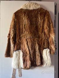 Pelliccia vintage, probabilmente lapin. Ritrovato nell’armadio di una parente. Probabilmente utilizzata nella sua gioventù per cui dovrebbe avere almeno cinquant’anni. Bicolore. Elementi in pelle sulle tasche, in questo punto ha perso un pochino il pelo. Vendo per non sacrificare il prodotto. Io non potrei metterlo.