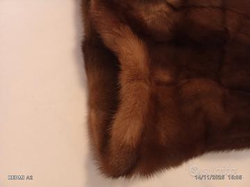 pelliccia vintage in teste di visone, priva di difetti, pelo lucido, colore marrone, collo ampio, maniche risvoltabili, fodera perfetta, tasche laterali, veramente bella, priva di cattivo odori, morbida