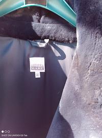 Pelliccia sintetica blu notte vintage taglia S, vestibilita' abbondante con spalla raglan , lunghezza sopra il ginocchio . Ha due bottoni grandi tondi tono su tono, che consentono due versioni di collo :alto se abbottonati entrambi , basso arrotondato se abbottonato solo quello inferiore. Ha ganci interni per la chiusura, davanti ci sono due tasche laterali capienti. Brand Andrea Mare. Condizioni usato in ottimo stato. Spedizione immediata.