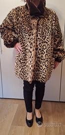 Meravigliosa pelliccia vintage, modello a imitazione macchie di leopardo con polsini e colletto in tinta unita marrone.