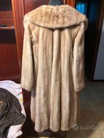 Vendo splendida pelliccia in visone chiaro naturale, modello lungo con ampio collo a scialle, linea elegante e senza tempo.