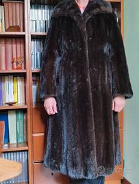Cappotto Visone Black Glama. Anni'80. Esente da difetti. Larghezza spalle cm.40. Lunghezza maniche cm.57. Lunghezza complessiva cm.112. Taglia 44-46. Rifinita all'interno con passamaneria. Chiusura a ganci.