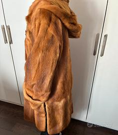 Pelliccia visone chiaro mod. Montgomery cappuccio e apacchi laterali molto attuale Ottimo stato