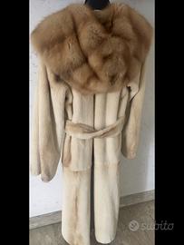 Taglia 40. Visone rasato color avorio e zibellino. Lunghezza 110 cm.