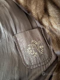 Pelliccia visone vero con cappuccio realizzata da Rindi pellicce cifrata fodera classica raso marrone